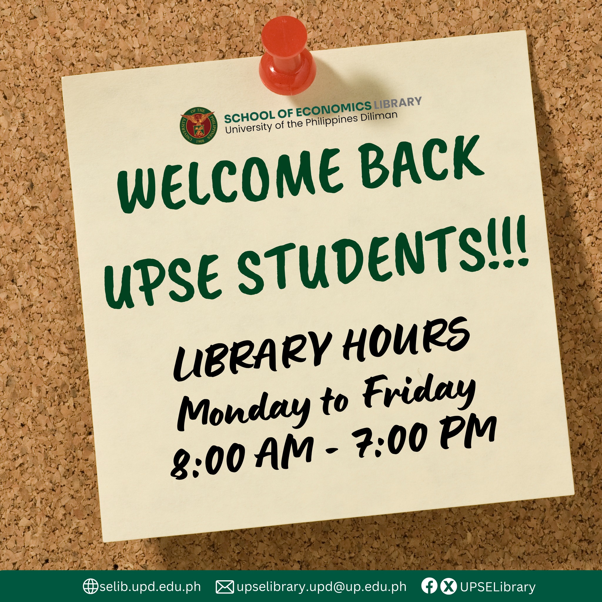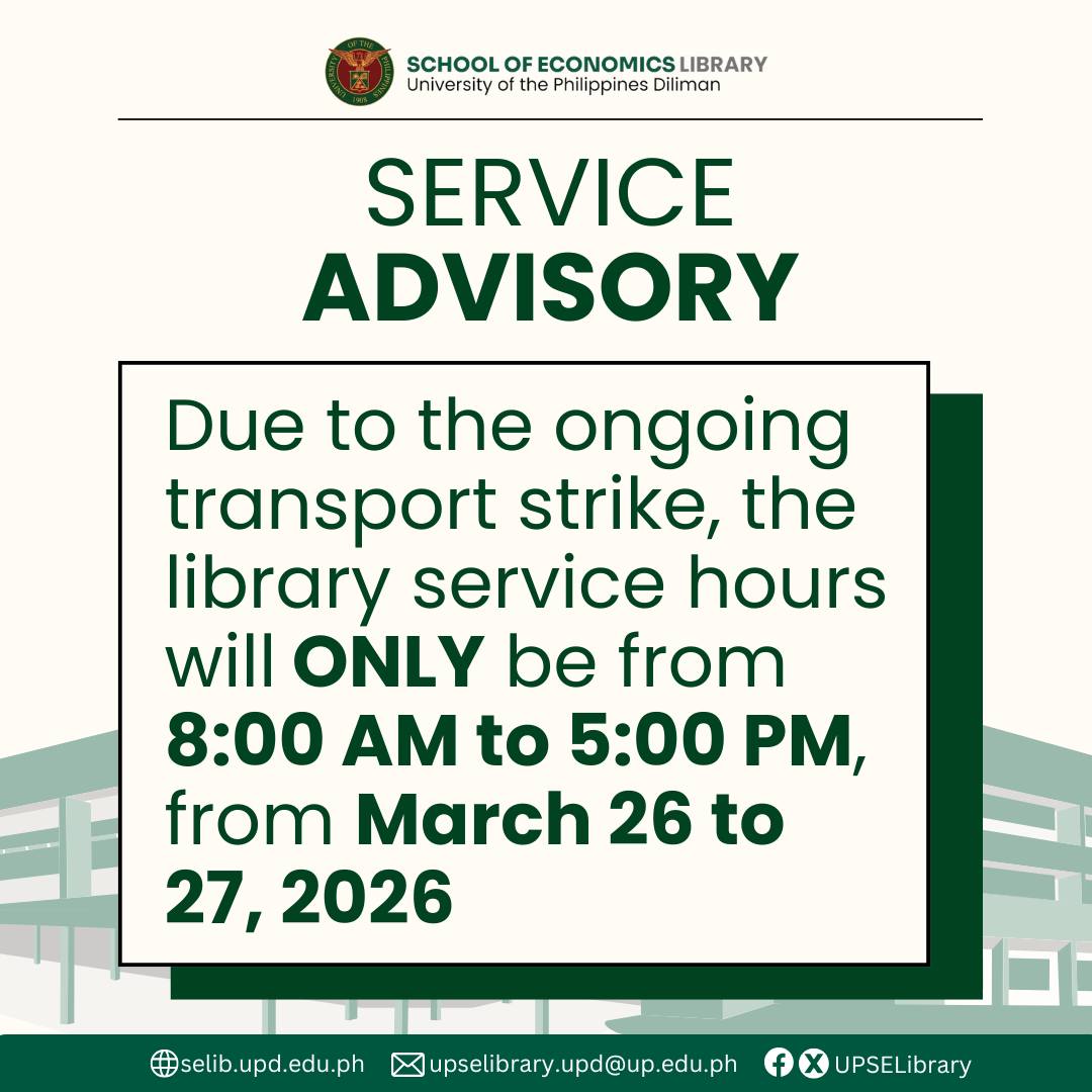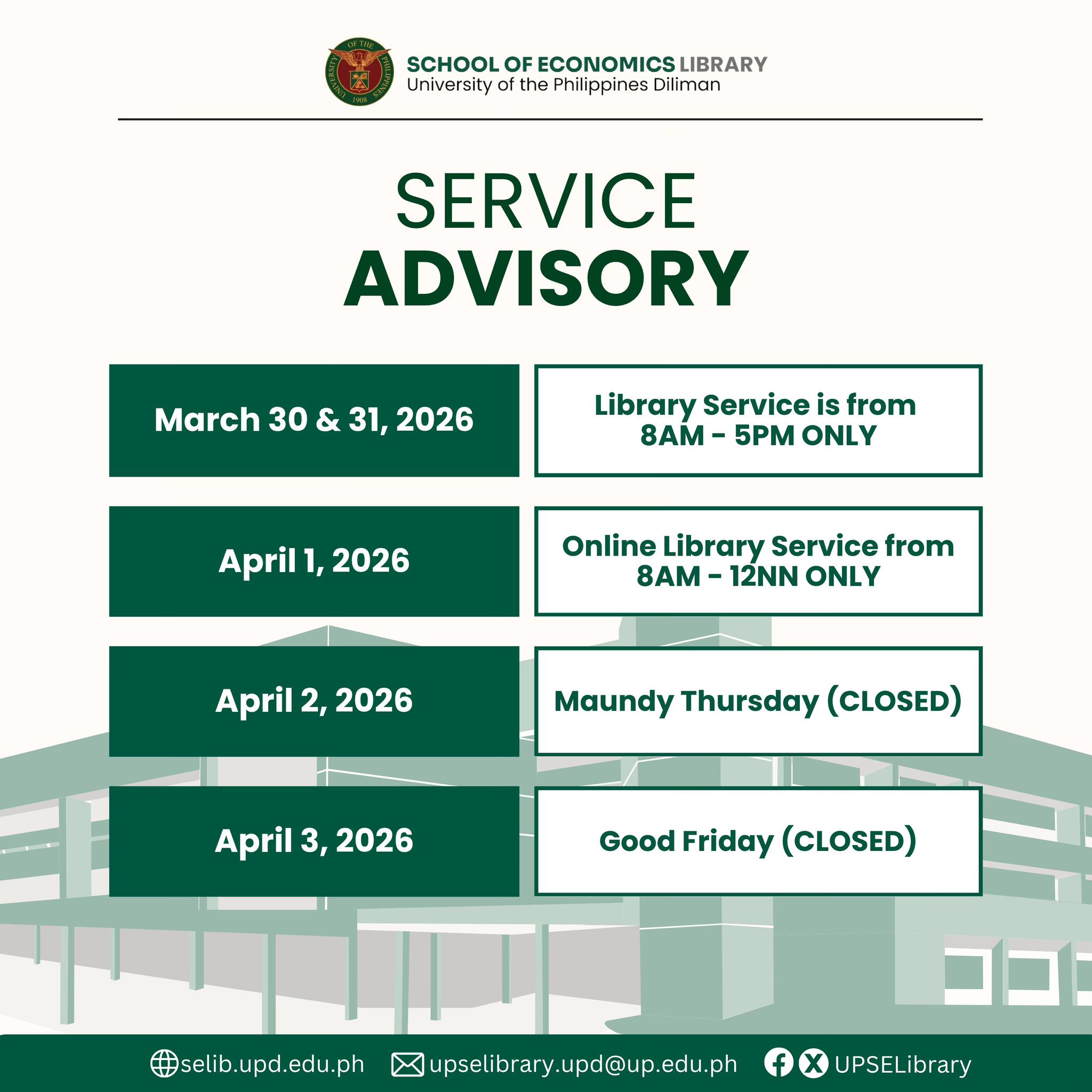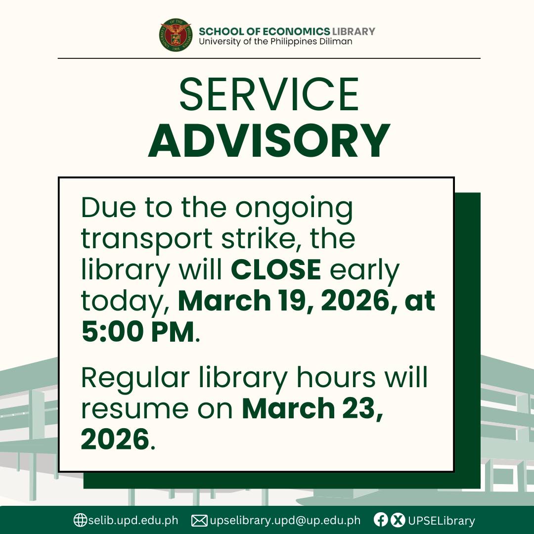 In line with the work and class suspensions due to Super Typhoon “Uwan,” the UP School of Economics Library will be CLOSED on November 10, 2025.