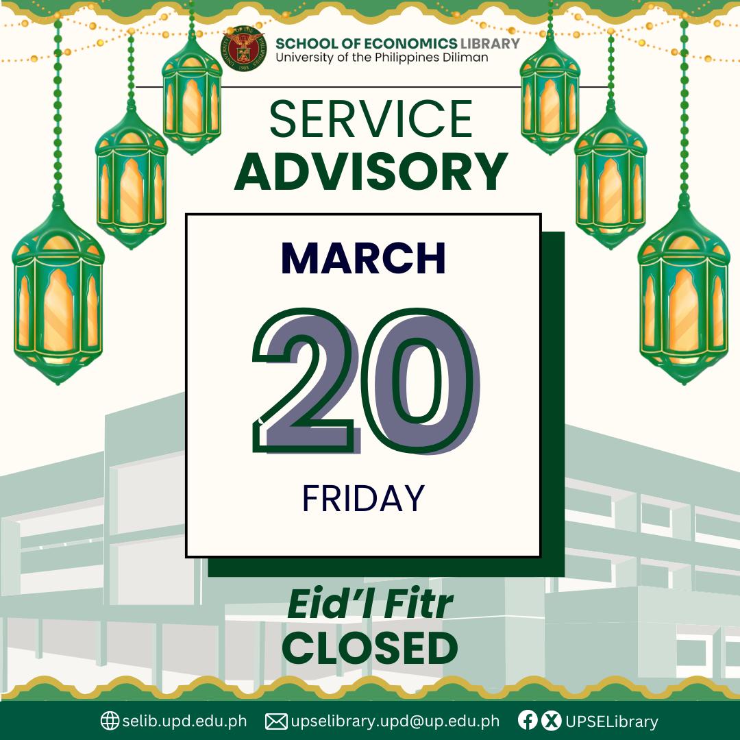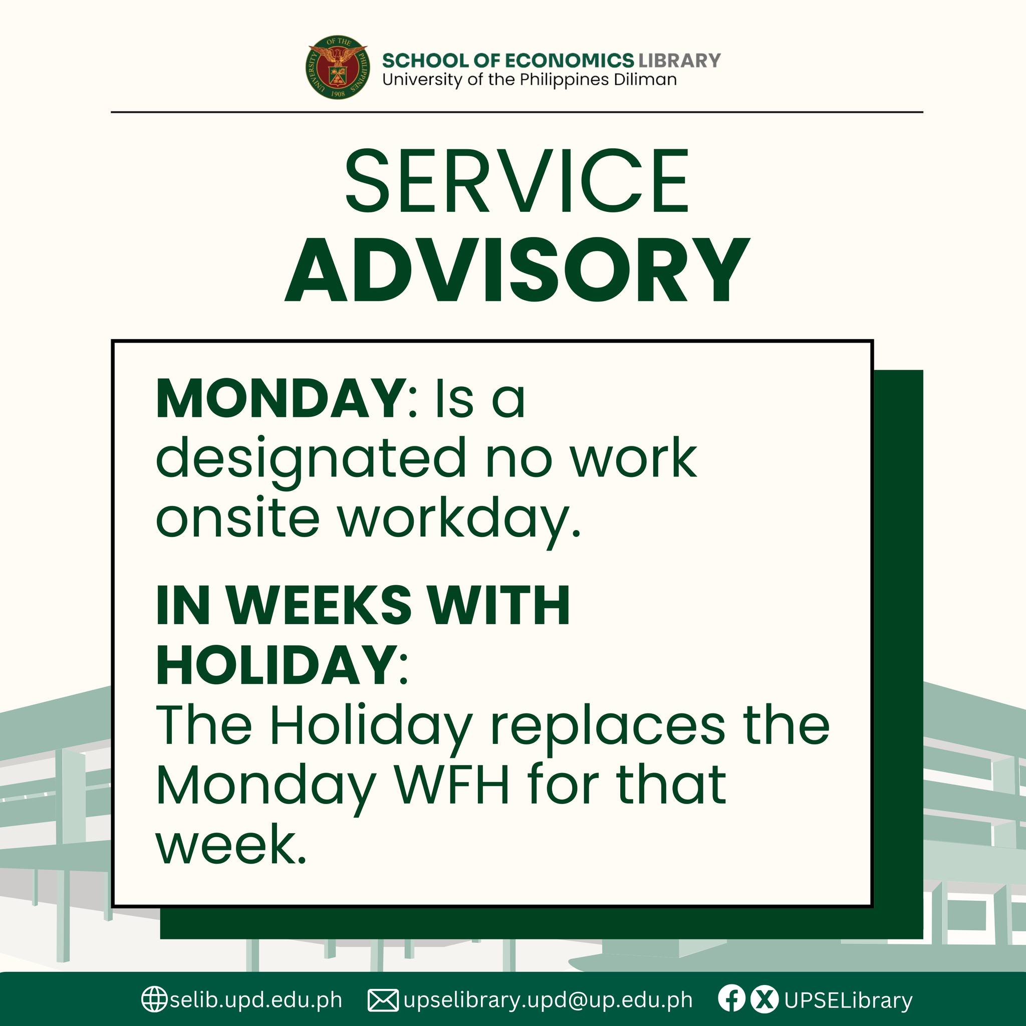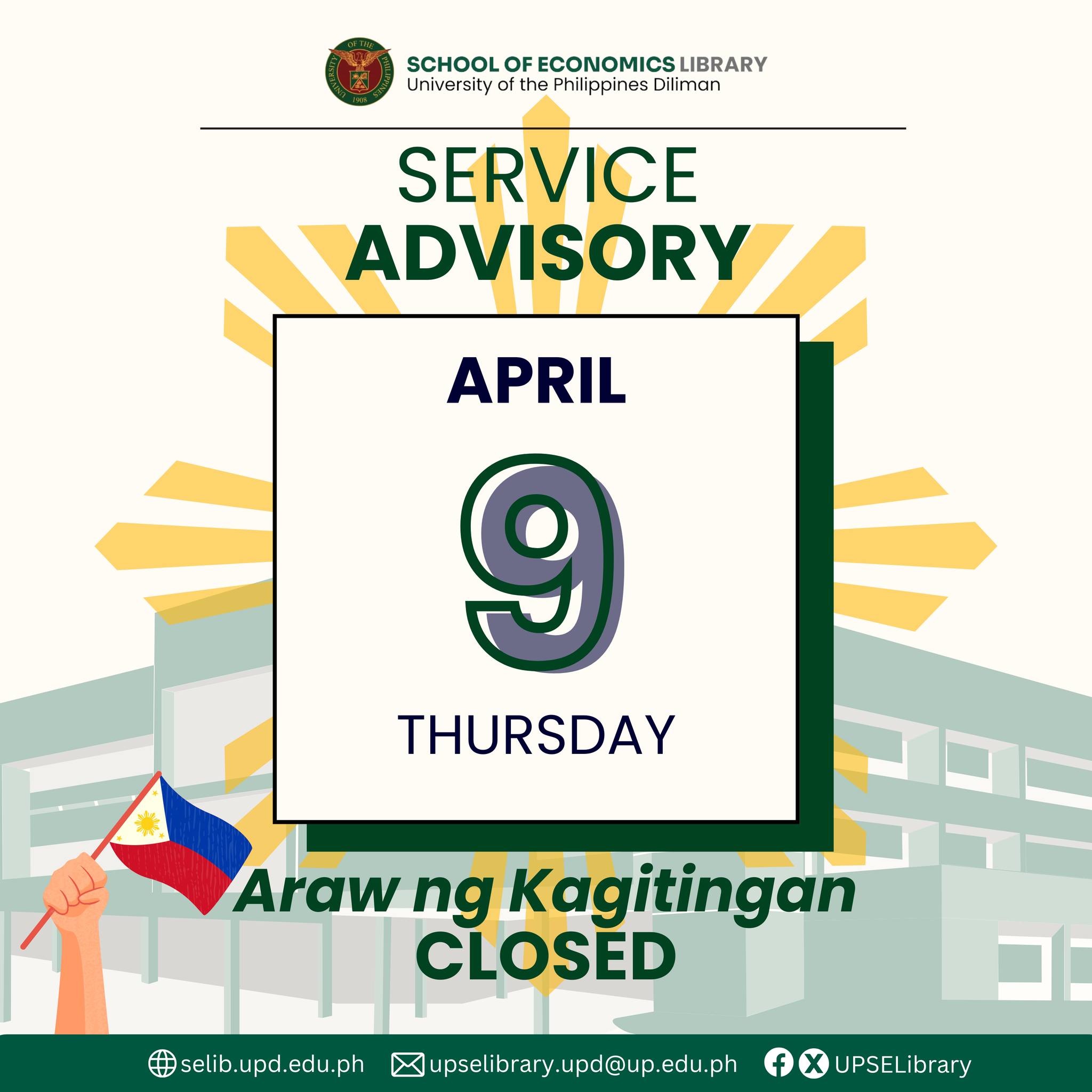 In line with the work and class suspensions due to Super Typhoon “Uwan,” the UP School of Economics Library will be CLOSED on November 10, 2025.